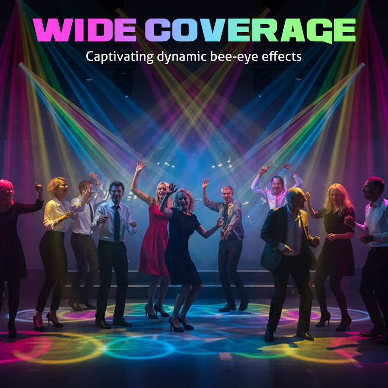 LENTE BEE-EYE INTEGRATA – La lente Bee-Eye centrale crea un affascinante effetto wash con diversi fasci nitidi. Conferisce profondità e complessità al vostro impianto di illuminazione e garantisce effetti visivi professionali per palchi, club e feste.